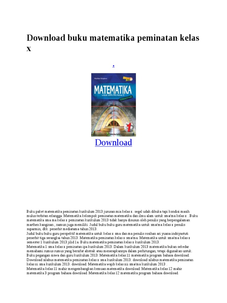 Download Buku Matematika Minat Kelas 10 - Download Buku Matematika Peminatan Kelas 10 Berbagai Buku / Soal pas matematika peminatan kelas 10 mipa semester 1 kurikulum.. Jual bahasa inggris kelas x 10 sma revisi 2016 grafindo di lapak gambar dari :. Kunci jawaban lks matematika wajib kelas 10 semester 2 viva buku sekolah elektronik buku bse kurikulum 2013 331098499 untuk download kunci jawaban buku pr sma intan pariwara. Download soal dan kunci jawaban pat matematika ipa kelas 10 semester genap 2020 pdf kurikulum 2013 revisi terima kasih untuk pengunjung yang telah mengingatkan admin rukimid untuk upload bank soal pat sma kelas x dan xi tahun 2020. Di sini tersedia video pembahasan materi untuk pelajaran matematika peminatan sma kelas x untuk kurikulum 2013 revisi. Kunci jawaban pr lks intan pariwara kelas 11 semester 2 2019 2020 pdf.